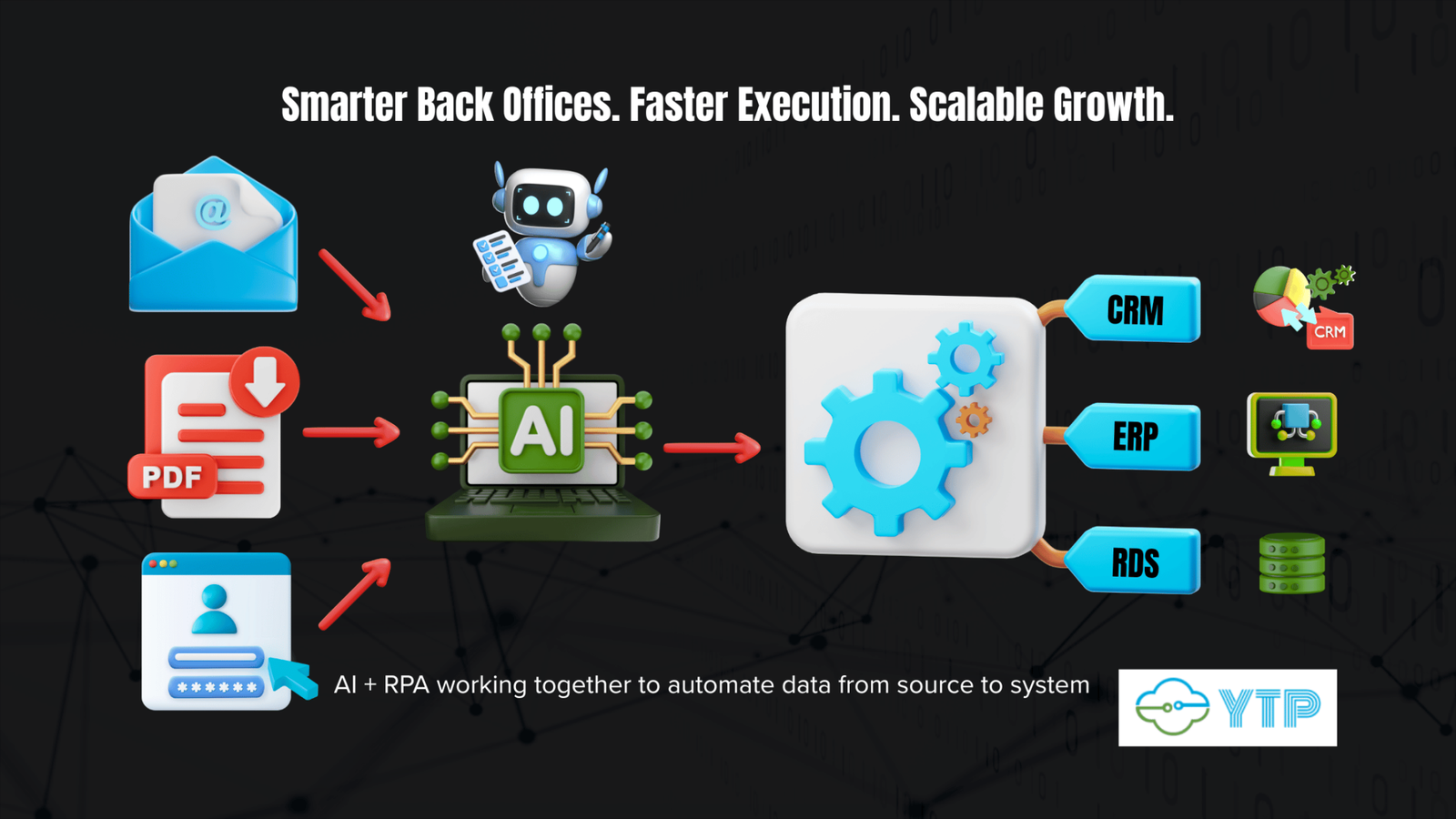 At Yotta Tech Ports Inc., we believe real innovation lies in unlocking time—so teams can focus on growth, not grunt work. Through a strategic blend of Artificial Intelligence (AI) and Robotic Process Automation (RPA), we’ve helped legal firms, fast-growing businesses, and insurance companies modernize their operations, save time, reduce costs, and position themselves for scalable growth.