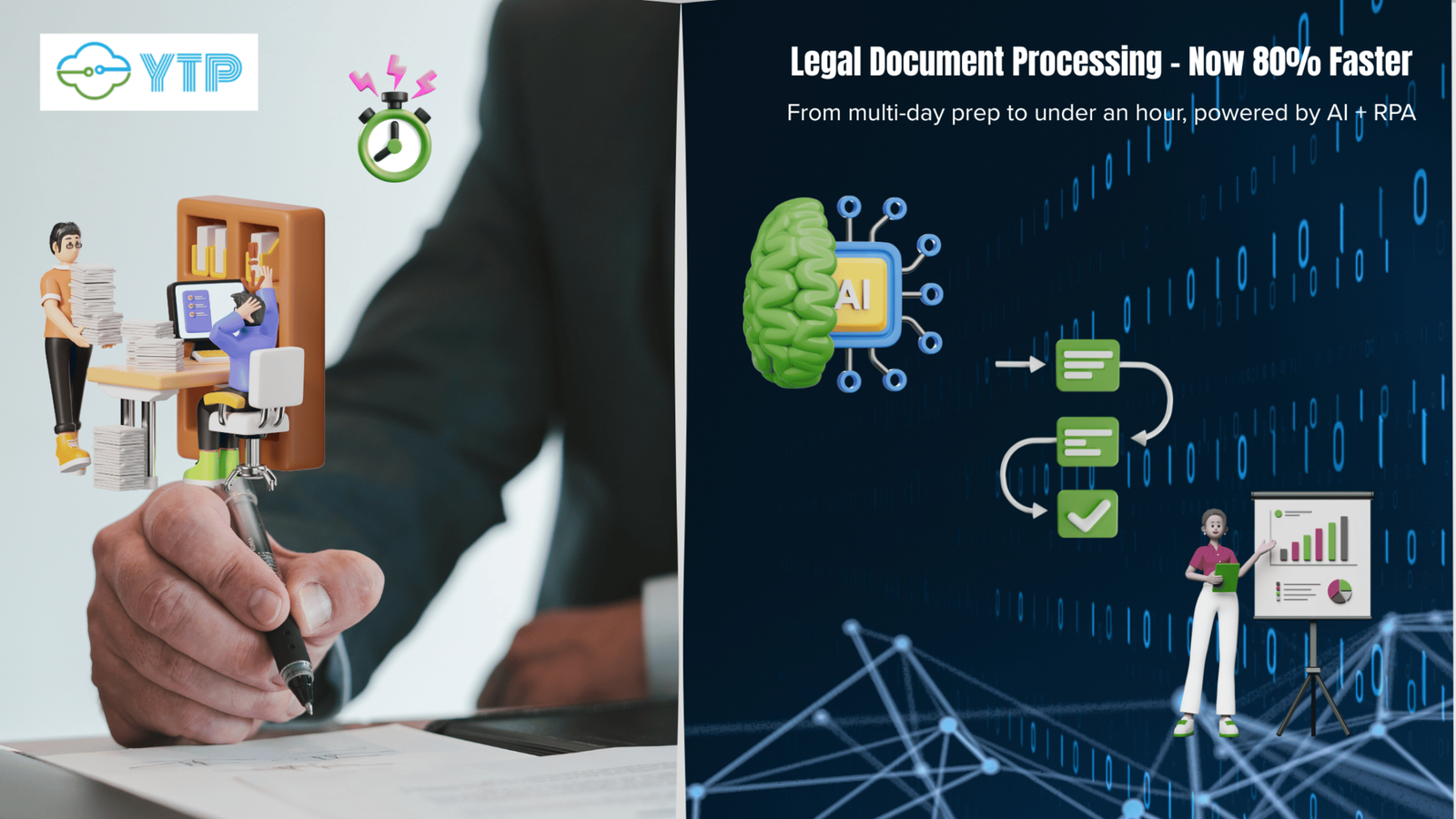 Impact: Document turnaround time dropped by over 80%. What once took two to three days now takes less than an hour—freeing up teams to take on more work and expand their client base.